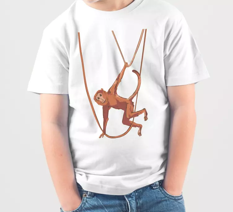 Choosing the Kids t-shirt monkey swinging on a rope kids t-shirt is a decision that will brighten your child's wardrobe! This t-shirt is not just a piece of clothing; it’s a fun way for kids to express their playful spirit. Made with soft and breathable fabric, it ensures comfort for all-day wear. Whether it's for a day at the park or a casual outing, this t-shirt provides a unique style that stands out and celebrates the joy of being a child!