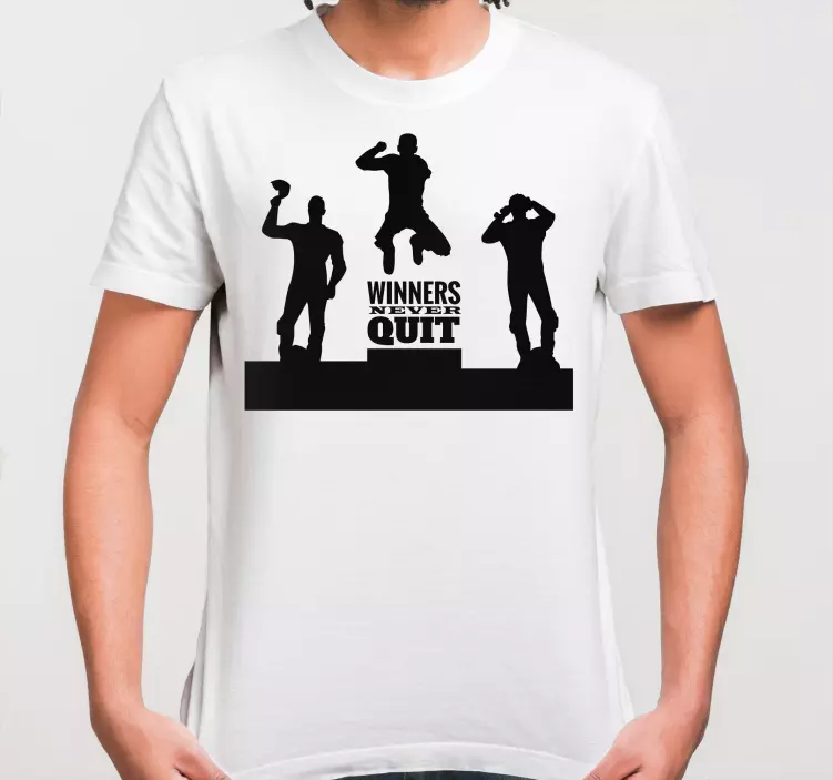 Introducing our Winners never quit t-shirt, a powerful motivational statement that embodies the spirit of achievement and victory! This stunning design features the inspiring quote 'Winners never quit' prominently displayed, symbolizing success and celebration. Crafted for those who strive for greatness, this t-shirt is perfect for sports enthusiasts and anyone looking to embrace a winning mindset.