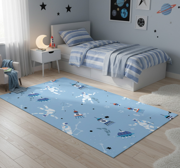 Bedroom vinyl rug with astronauts and spaceships