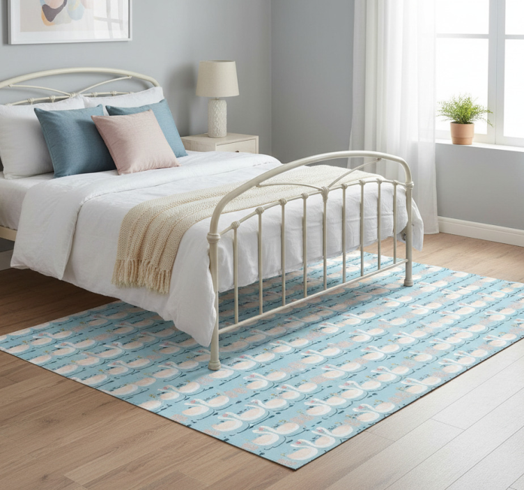 Choosing the Bedroom vinyl rug with swans in love on blue bedroom vinyl rug for your decor is a decision that brings warmth and charm to your space. This captivating rug acts as a stunning focal point, enhancing the overall aesthetic of your bedroom. Its delightful design inspires tranquility and love, making it perfect for creating a cozy retreat. Let your personality shine through with this unique addition that captures the essence of romance!