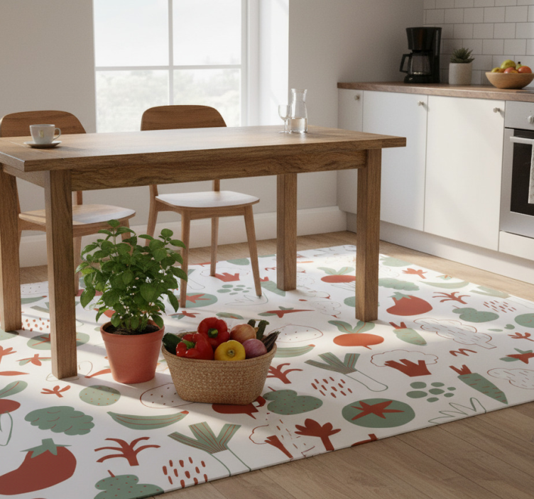 The Colorful vegetables kitchen vinyl rug is perfect for adding a splash of color and personality to your kitchen decor. Imagine the cheerful ambiance it creates, making your cooking space feel more inviting and lively. This kitchen vinyl rug not only enhances your interior but also serves a practical purpose by protecting your floors while making a bold statement.