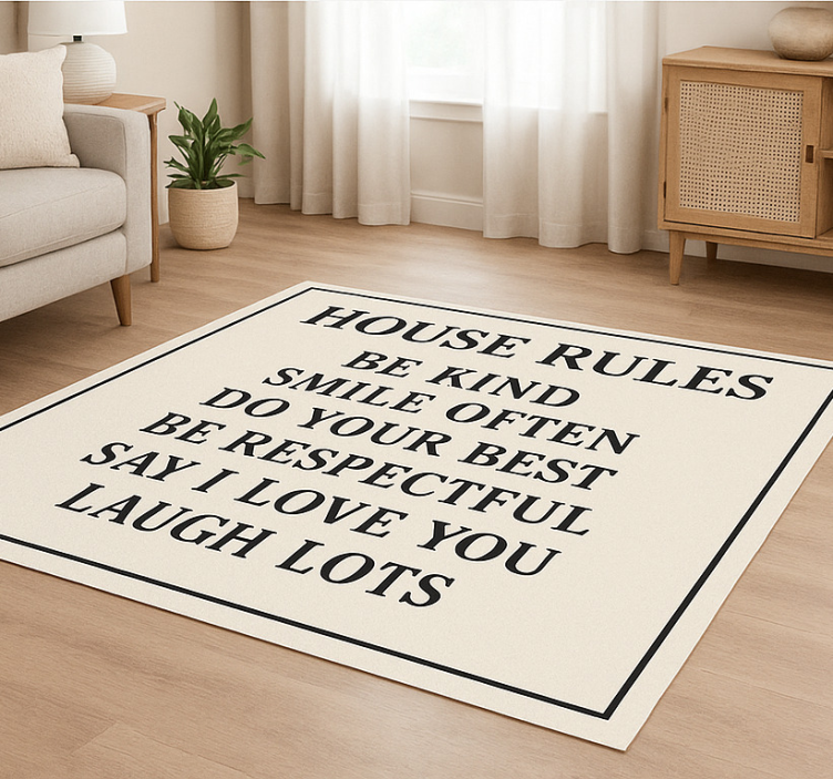 Reference: R19810Transform your living space with our stunning Custom vinyl rug house rules decor! This exquisite rug features a unique design that not only adds a personal touch but also serves as a vibrant conversation starter. With its easy-to-clean surface, anti-slip backing, and scratch-resistant material, this rug is perfect for any home. Plus, it provides thermal insulation and protects your floors from everyday wear and tear!