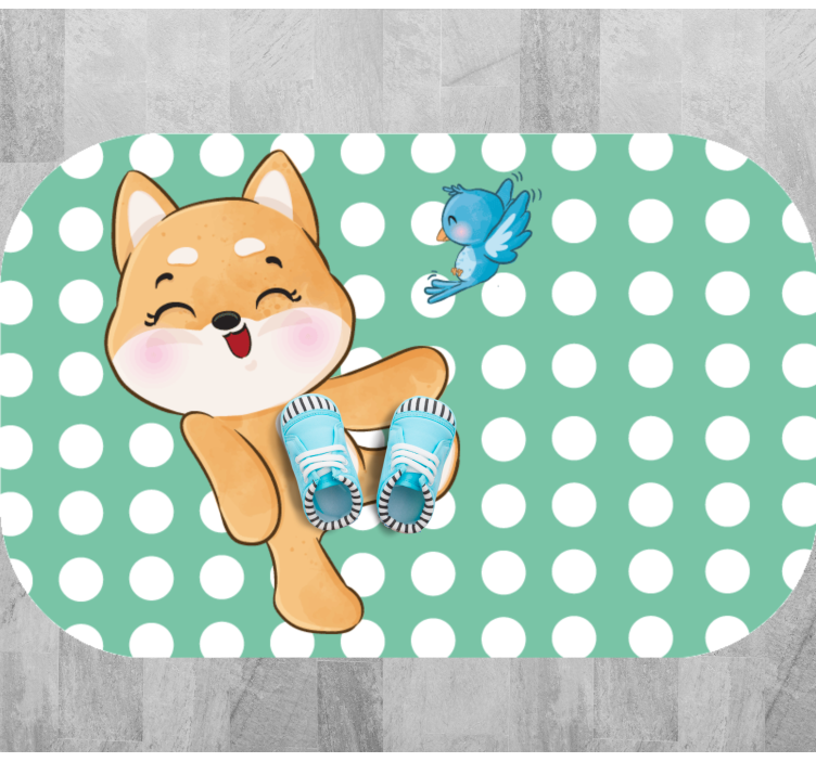 The Cute Animal Happy Puppy Animal Mat is perfect for decorating your child's bedroom or playroom. The mat features a green matte background with white dots, and is made of quality vinyl that will last for years without any problems. It is easy to clean and does not slip or get affected by external effects.