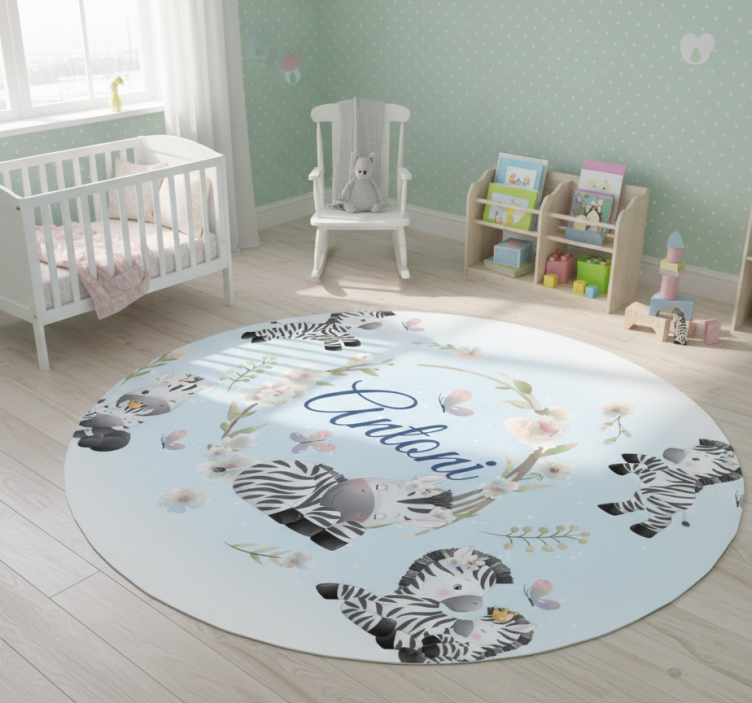 The Animal vinyl rug featuring baby zebras with name animal vinyl rug is an exceptional choice for decoration because it effortlessly combines style and functionality. Its charming design creates a joyful atmosphere that sparks imagination, making it an ideal addition to your child's space. With its vibrant colors and cute zebra motifs, this rug enhances the overall aesthetic of any room, ensuring it remains a focal point of delight for both children and adults alike!