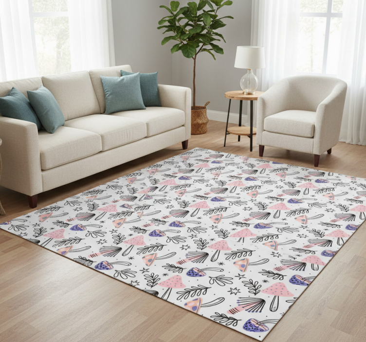 Flower vinyl rug with classic mushrooms and flowers