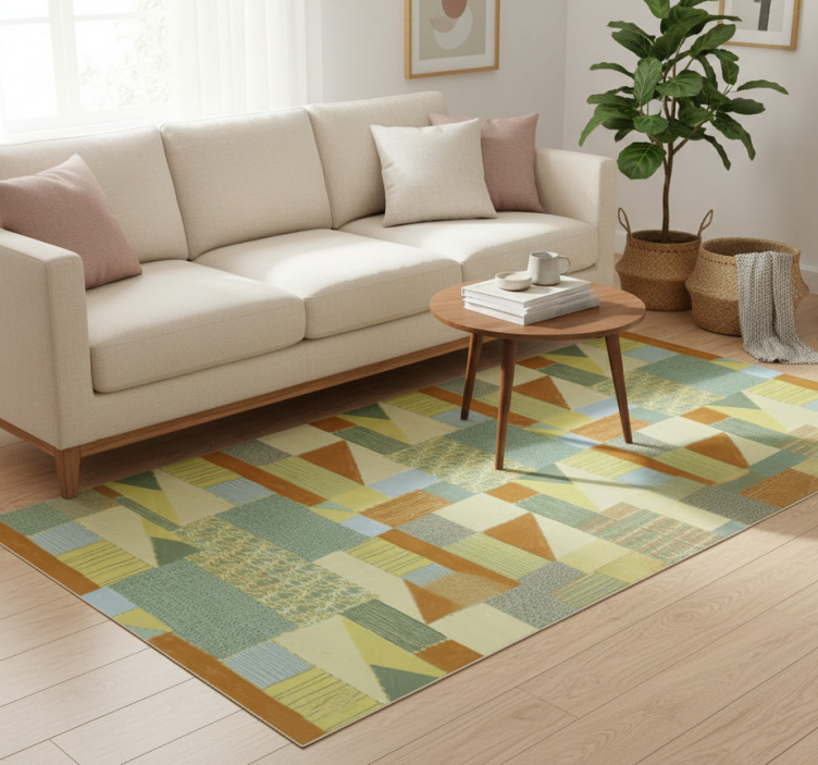 Geometric vinyl rug in colorful triangle patchwork