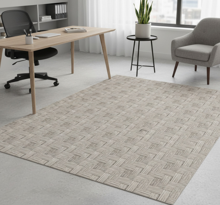 Gray handmade wicker effect office vinyl rug
