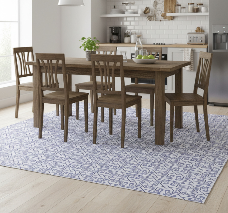 The Kitchen vinyl rug in blue octagon portuguese tile kitchen vinyl rug is more than just a floor covering; it’s a statement piece that enhances your home’s aesthetic! The intricate design adds a touch of artistry to your kitchen, creating an inviting atmosphere for family and friends. Its vibrant colors can brighten even the dullest spaces, making your kitchen a delightful place to gather and cook. Elevate your decor with this charming rug that combines beauty and functionality seamlessly!