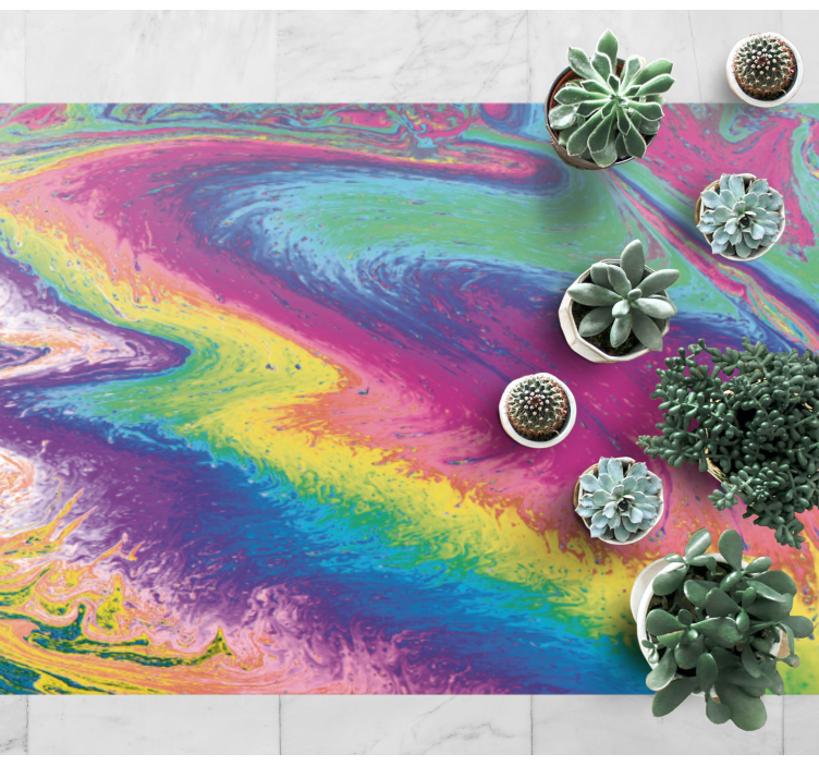 Add a pop of colorful touch and effect to any room with the placement of this beautiful Marble Rainbow Texture Rug. Made from quality vinyl, this rug is highly resistant to fading and external effects, making it both durable and easy to maintain. With its ability to be brushed, swept and mopped regularly, this rug is perfect for high-traffic areas and will maintain its vibrant colors for years to come.