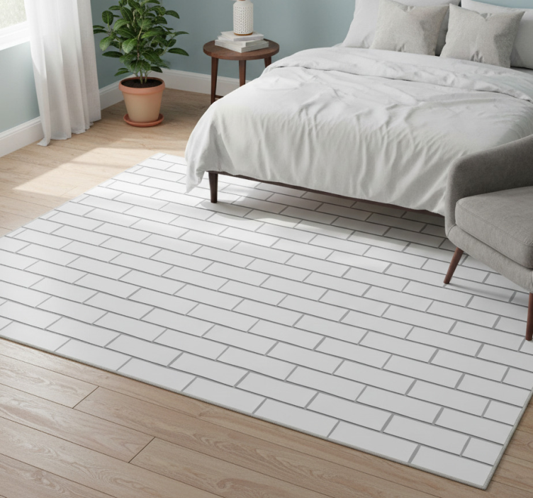 Reference: R24240Transform your bedroom into a stylish sanctuary with our White thick brick bedroom vinyl rug. Featuring a stunning design that mimics the look of thick white bricks, this vinyl rug adds a modern and sophisticated touch to any space. The combination of its eye-catching graphic and the practical benefits makes it a perfect addition for those looking to enhance their home decor. Protective and resilient, it not only beautifies but also safeguards your floors!