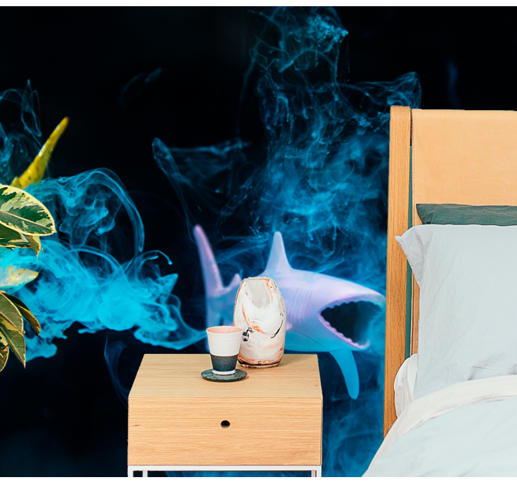 Transform your space with our Animal wall mural colorful shark illustration, where vibrant colors and dynamic designs come together to create a stunning visual experience. This captivating design features a majestic shark swimming gracefully through the ocean, surrounded by swirling smoke and the rich textures of underwater sea life. The photomontage effect brings the ocean's beauty right into your home, making it an ideal centerpiece for any room.