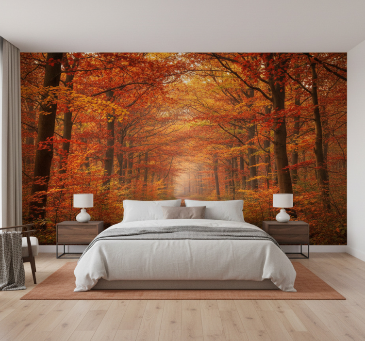 The Forest wall mural autumn tree path forest wall mural is an inspiring choice for anyone looking to enhance their home or office decor. Imagine walking through a tranquil forest every day, with the captivating colors of autumn surrounding you. This mural doesn't just decorate a wall; it creates an immersive experience that can uplift your mood and spark creativity. It brings nature indoors, allowing you to reconnect with the beauty of the outdoors from the comfort of your own space!