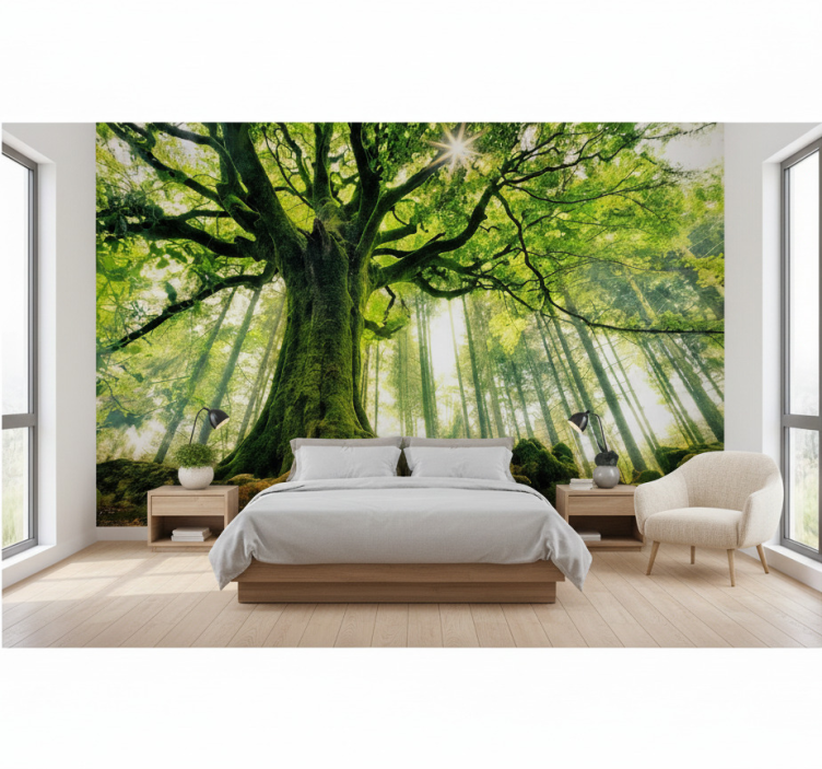Reference: F11934Transform your space with the stunning Forest wall mural golden forest giant. This eye-catching design features a breathtaking golden forest scene, capturing the beauty of nature in rich, matt colors. The non-woven wallpaper is not only visually striking but also durable, with a lifespan of 10-15 years. Its unique design invites warmth and tranquility into any room, making it the perfect choice for those looking to enhance their home decor!