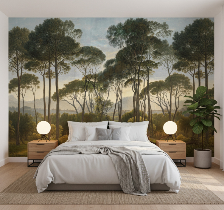 Applying the Forest wall mural in subdued tropical palms forest wall mural is a straightforward process. You will need glue, a roller, a brush, and a cutter to achieve a flawless finish. Simply prepare your wall, apply the adhesive, and position the mural for a stunning transformation!