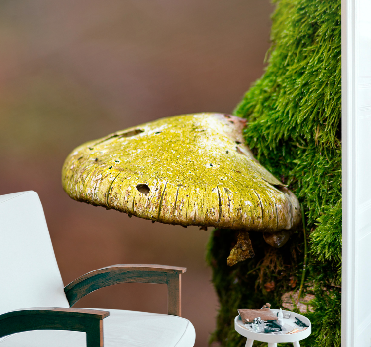 If you're a fan of fungi design and want to bring the beauty of nature into your home, you'll love this mural. Featuring a mossy tree trunk with yellow mushrooms, this mural is the perfect addition to any room.