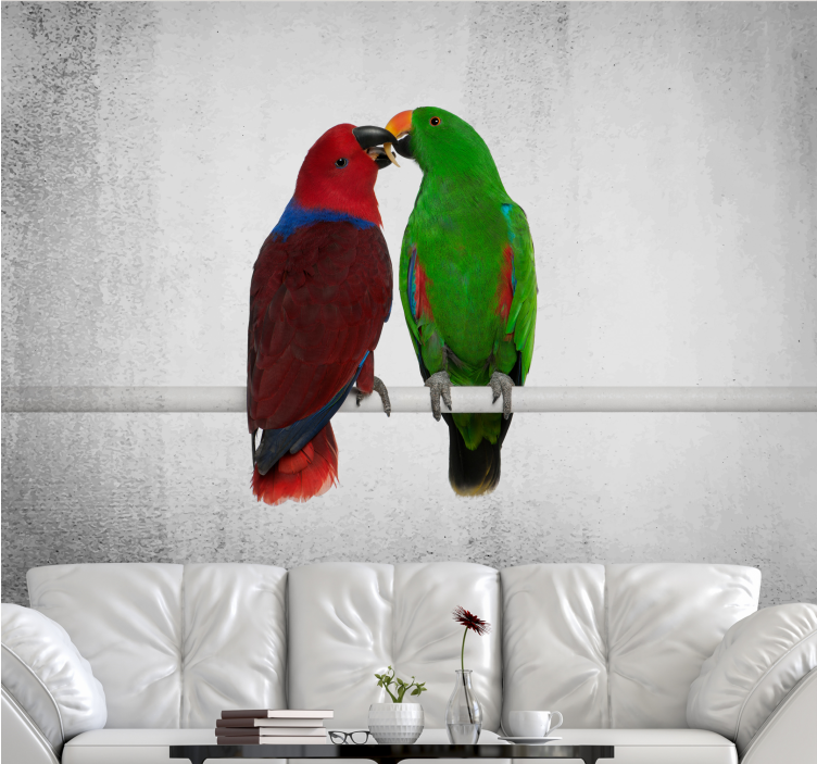 Wall mural colorful parrots interaction